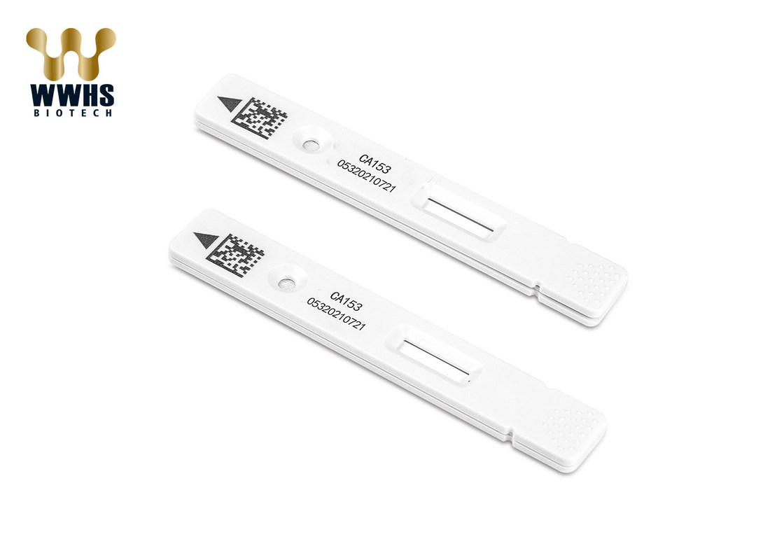 Быстрый тест CA153 одношаговый хроматографически immunoassay сэндвича конструированный для количественного измерения CA153. Антиген CA153 в образце сперва был прыгнут с проспряганной смесью дневного обозначенного CA153 моноклональное антитело, тогда двинул и совместил с другим моноклональным антителом CA153 зафиксированным на мембране нитроцеллюлозы, и двойной комплекс сэндвича антитела был сформирован на линии обнаружения мембраны нитрата целлюлозы. Количественные результаты обнаружения были получены сухим fluoroimmunoassay анализатором NIR-1000.